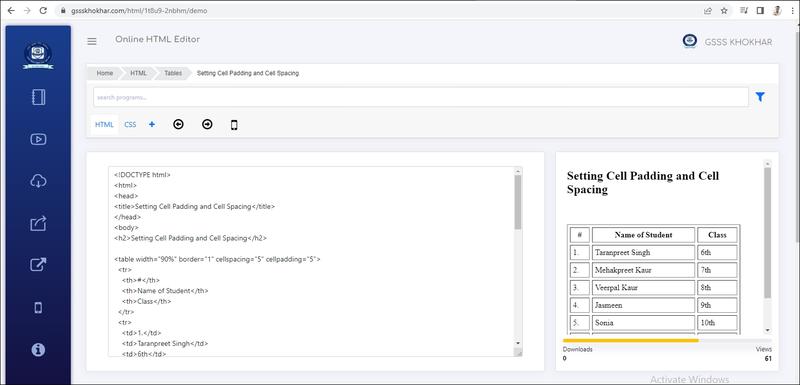 ਸੈੱਲ ਪੈਡਿੰਗ ਅਤੇ ਸੈੱਲ ਸਪੇਸਿੰਗ ਦੀ ਵਰਤੋਂ ਟੇਬਲ ਸੈੱਲਾਂ ਵਿੱਚ ਖਾਲੀ ਜਗ੍ਹਾ ਨੂੰ ਐਡਜਸਟ ਕਰਨ ਲਈ ਕੀਤੀ ਜਾ ਸਕਦੀ ਹੈ। ਇਨ੍ਹਾਂ ਖਾਲੀ ਜਗ੍ਹਾਵਾਂ (Blank Spaces) ਨੂੰ ਵਿਵਸਥਿਤ ਕਰਨ ਲਈ ਟੇਬਲ ਟੈਗਜ਼ ਵਿੱਚ ਦੋ ਐਟਰੀਬਿਊਟਸ cellpadding ਅਤੇ cellspicing ਦੀ ਵਰਤੋਂ ਕੀਤੀ ਜਾਂਦੀ ਹੈ: • Cellpadding: ਸੈੱਲਪੈਡਿੰਗ ਟੇਬਲ ਸੈੱਲਾਂ ਨੂੰ ਫਾਰਮੈਟ ਕਰਨ ਅਤੇ ਸੈੱਲਾਂ ਦੀ ਦਿੱਖ ਵਧੀਆ ਬਣਾਉਣ ਲਈ ਇੱਕ ਮਹੱਤਵਪੂਰਣ ਵਿਸ਼ੇਸ਼ਤਾ ਹੈ।