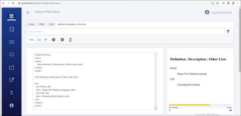 • ਡੇਫੀਨੇਸ਼ਨ ਟਾਈਟਲ/ਪਰਿਭਾਸ਼ਾ ਸਿਰਲੇਖ (Definition Title): ਇਸ ਨੂੰ ਡਾਟਾ ਟਰਮ (Data Term) ਵੀ ਕਿਹਾ ਜਾ ਸਕਦਾ ਹੈ। ਡੇਫੀਨੇਸ਼ਨ ਟਾਈਟਲ ਲਈ <DI> ਟੈਗ ਦੀ ਵਰਤੋਂ ਕੀਤੀ ਜਾਂਦੀ ਹੈ? ਡੈਫੀਨੇਸ਼ਨ ਡਿਸਕ੍ਰਿਪਸ਼ਨ/ਪਰਿਭਾਸ਼ਾ ਵਰਣਨ (Definition Description): ਇਸ ਨੂੰ ਡਾਟਾ ਡੇਵੀਨੇਸ਼ਨ (Data Definition) ਵੀ ਕਿਹਾ ਜਾ ਸਕਦਾ ਹੈ। ਡੇਫੀਨੇਸ਼ਨ ਡਿਸਕ੍ਰਿਪਸ਼ਨ ਲਈ <DD> ਟੈਗ ਦੀ ਵਰਤੋਂ ਕੀਤੀ ਜਾਂਦੀ