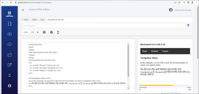 <p>ਇਸ ਉਦਾਹਰਨ ਵਿੱਚ, ਅਸੀਂ ਨੈਵੀਗੇਸ਼ਨ ਮੀਨੂ ਬਣਾਉਣ ਲਈ, Unordered List ਨੂੰ Horizontal ਰੂਪ ਵਿੱਚ ਸਟਾਈਲ ਕਰਨ ਲਈ CSS ਦੀ ਵਰਤੋਂ ਕੀਤੀ ਹੈ।</p>