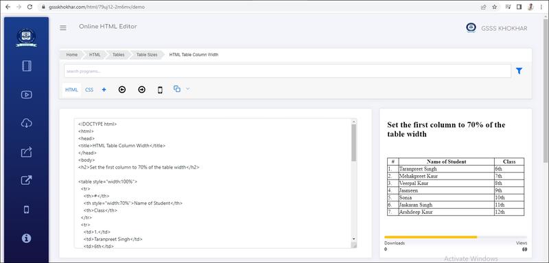 To set the size of a specific column, add the style attribute on a <th> or <td> element: