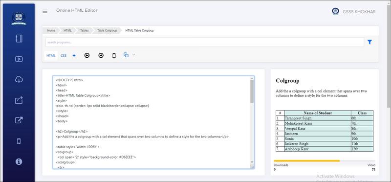 HTML Table Colgroup