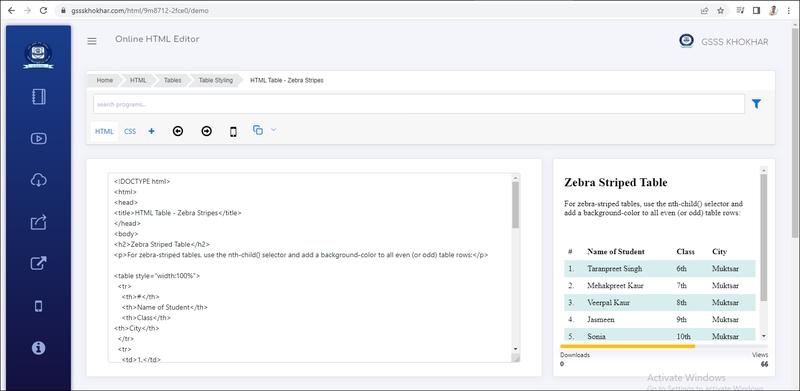 Note: If you use (odd) instead of (even), the styling will occur on row 1,3,5 etc. instead of 2,4,6 etc.