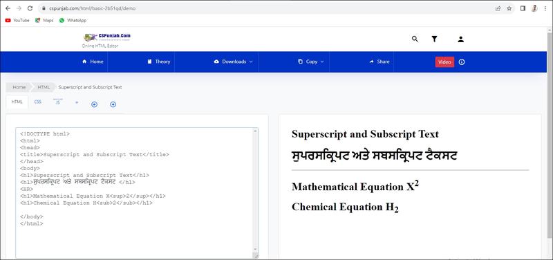 HTML ਡਾਕੂਮੈਂਟ ਵਿੱਚ <sub> ਟੈਗ ਦੀ ਵਰਤੋਂ ਸਬਸਕ੍ਰਿਪਟ ਰੂਪ ਵਿੱਚ ਟੈਕਸਟ ਦਾਖਲ ਕਰਨ ਲਈ ਕੀਤੀ ਜਾਂਦੀ ਹੈ। ਇਹ ਵੀ ਇੱਕ ਕੰਟੇਨਰ ਟੈਗ ਹੈ। <sub> ... </sub> ਐਲੀਮੈਂਟ ਵਿਚਕਾਰ ਲਿਖਿਆ ਕੰਟੈਂਟ ਇੱਕ ਸਬਸਕ੍ਰਿਪਟ ਦੇ ਰੂਪ ਵਿੱਚ ਦਿਖਾਇਆ ਜਾਂਦਾ ਹੈ। ਸਬਸਕ੍ਰਿਪਟ ਟੈਕਸਟ ਆਮ ਲਾਈਨ ਦੇ ਅੱਧੇ ਅੱਖਰ ਤੋਂ ਹੇਠਾਂ (half a character belov the normal line) ਦਿਖਾਈ ਦਿੰਦਾ ਹੈ ਅਤੇ ਕਈ ਵਾਰ ਛੋਟੇ ਫੌਂਟ ਵਿੱਚ ਦਿਖਾਇਆ ਜਾਂਦਾ ਹੈ। ਸਬਸਕ੍ਰਿਪਟ ਟੈਕਸਟ ਦੀ ਵਰਤੋਂ ਰਸਾਇਣਕ ਫਾਰਮੂਲੇ (chemical formulus) ਲਿਖਣ ਲਈ ਕੀਤੀ ਜਾ ਸਕਦੀ ਹੈ, ਜਿਵੇਂ ਕਿ H20 ਨੂੰ H2O ਵਜੋਂ ਲਿਖਿਆ ਜਾਣਾ।