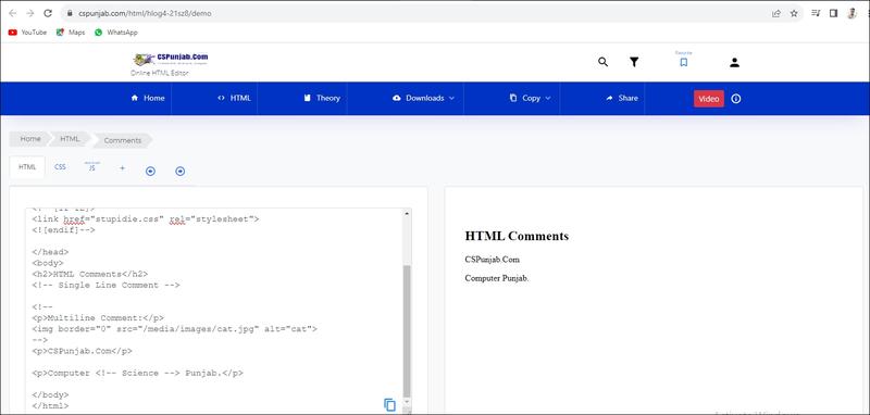 Comments are some text or code written in your code to give an explanation about the code, and not visible to the user. Comments which are used for HTML file are known as HTML comments. Anything written between these tags will be ignored by the browser, so comments will not be visible on the webpage.