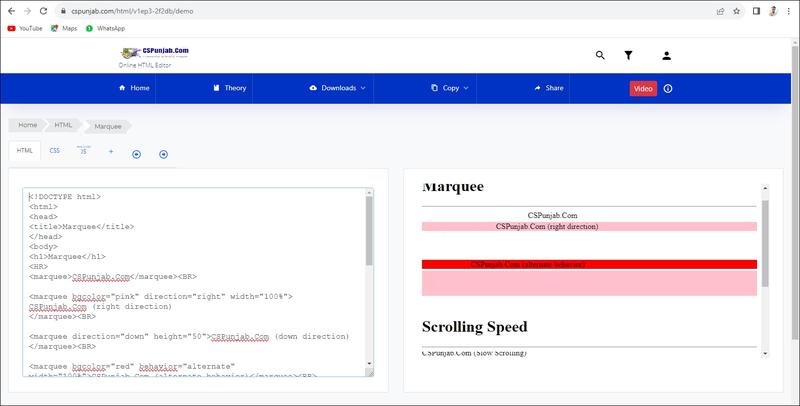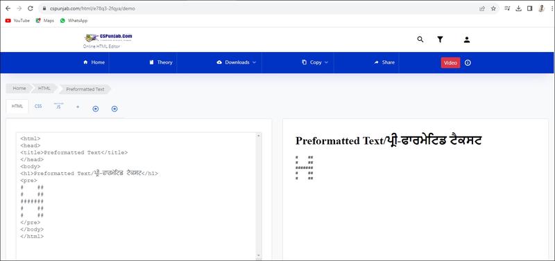 - Underline (ਅੰਡਰਲਾਈਨ): <u> ਟੈਗ ਦੀ ਵਰਤੋਂ ਟੈਕਸਟ ਉੱਪਰ ਅੰਡਰਲਾਈਨ ਇਫੈਕਟ ਲਾਗੂ ਕਰਨ ਲਈ ਕੀਤੀ ਜਾਂਦੀ ਹੈ। ਇਹ ਵੀ ਇੱਕ ਪੇਅਰਡ ਟੈਗ ਹੈ। ਕੋਈ ਵੀ ਟੈਕਸਟ ਜੋ <u> ... <u> ਐਲੀਮੈਂਟਸ ਵਿਚਕਾਰ ਲਿਖਿਆ ਜਾਂਦਾ ਹੈ, ਅੰਡਰਲਾਈਨਲ ਰੂਪ ਵਿੱਚ ਪ੍ਰਦਰਸ਼ਿਤ ਕੀਤਾ ਜਾਂਦਾ ਹੈ।